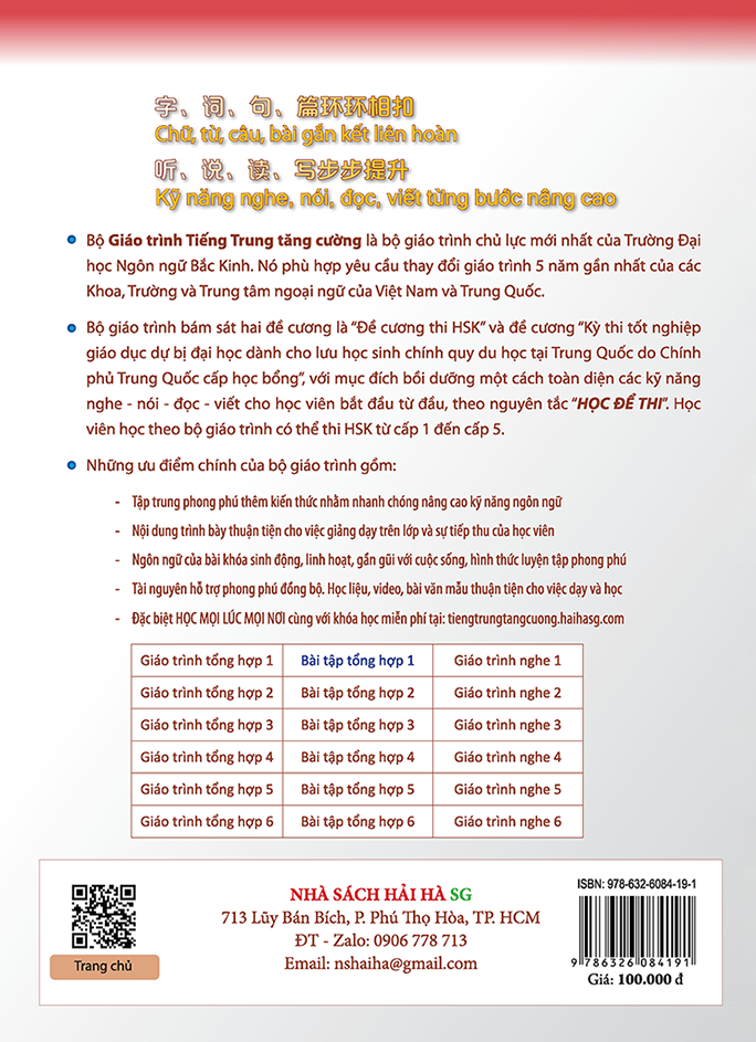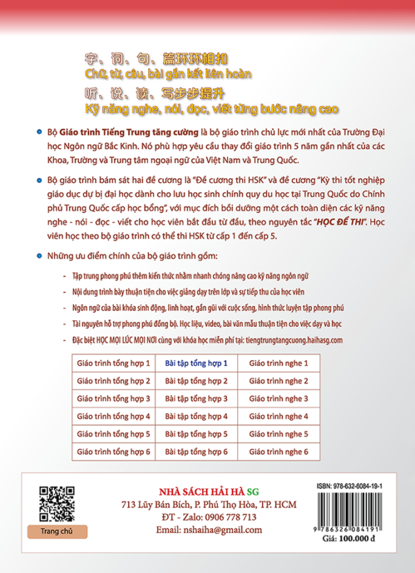 Bộ Giáo trình Tiếng Trung tăng cường là bộ giáo trình chủ lực mới nhất của Trường Đại học Ngôn ngữ Bắc Kinh. Nó phù hợp yêu cầu thay đổi giáo trình 5 năm gần nhất của các Khoa, Trường và Trung tâm ngoại ngữ của Việt Nam và Trung Quốc.