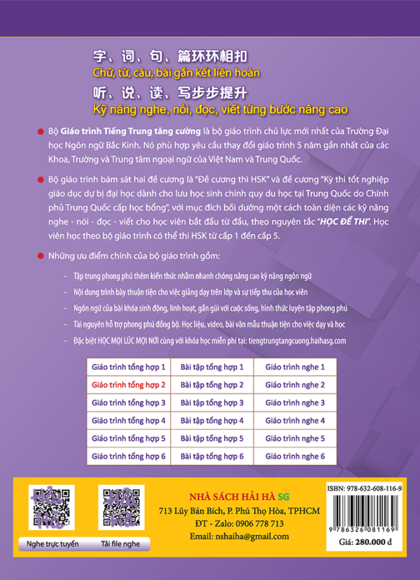 Bộ Giáo trình Tiếng Trung tăng cường là bộ giáo trình chủ lực mới nhất của Trường Đại học Ngôn ngữ Bắc Kinh. Nó phù hợp yêu cầu thay đổi giáo trình 5 năm gần nhất của các Khoa, Trường và Trung tâm ngoại ngữ của Việt Nam và Trung Quốc.