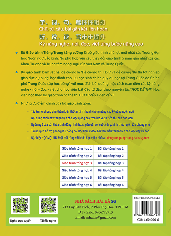 Bộ Giáo trình Tiếng Trung tăng cường là bộ giáo trình chủ lực mới nhất của Trường Đại học Ngôn ngữ Bắc Kinh. Nó phù hợp yêu cầu thay đổi giáo trình 5 năm gần nhất của các Khoa, Trường và Trung tâm ngoại ngữ của Việt Nam và Trung Quốc.
